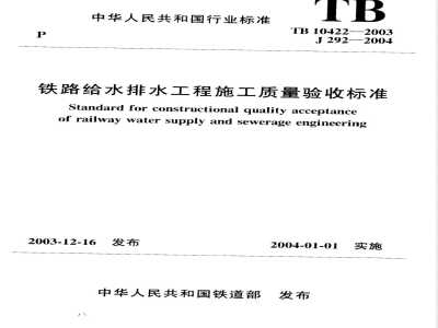 本标准适用于新建。改建标准规矩铁路的给水排水工程施工质量的验收 TB 10422-2003 铁路给水排水工程施工质量验收标准 TB10422-2003 标准下载解压密码:www.bzxz.net