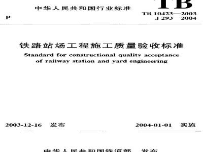本标准适用于旅客列车设计行车速度等于或小于160km/h客货列车共线运行的新建、改进标准规矩铁路站场工程质量的验收、新工艺、新材料,其施工质量的验收应另行制定补充标准。 TB 10423-2003 铁路站场工程施工质量验收标准(附条文说明) TB10423-2003 标准下载解压密码:www.bzxz.net