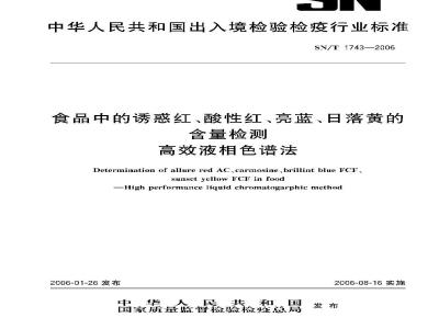 SN/T 1743-2006 食品中诱惑红、酸件红、亮蓝、日落黄的含量检测高效液相色谱法 SN/T1743-2006 标准下载解压密码:www.bzxz.net