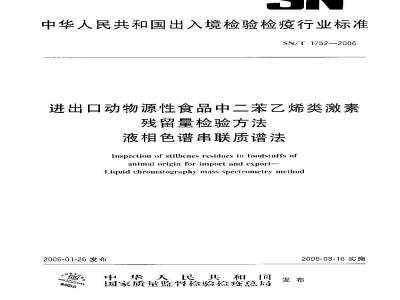 SN/T 1752-2006 进出口动物源性食品中二苯乙烯类激素残留量检测方法液相色谱串联质谱法 SN/T1752-2006 标准下载解压密码:www.bzxz.net