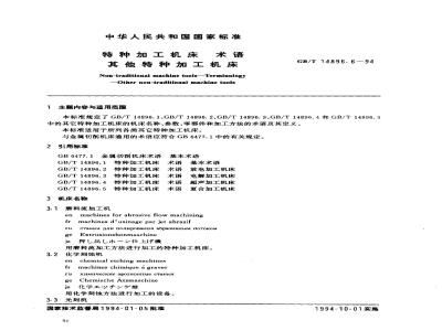 本标准规定了GB/T14896.1GB/T14896.2、GB/T14896.3,GB/T14896.4和GB/T14896.5中的其它特种加工机床的机床名称、参数、零部件和加工方法的术语及其定义。本标准适用于所列各类其它特种加工机床。与金属切削机床通用的术语应符合GB6477.1中的有关规定。2引用标准