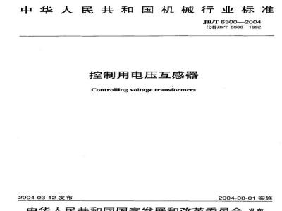 本标准代替JB/T6300一1992《控制用电压互感器》。本标准与JB/T6300一1992《控制用电压互感器》相比,主要变化如下:JB/T6300—2004