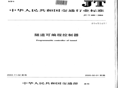 本标准规定了基于可编程控制器的公路隧道(区域)控制器及其相关外围设备的工作条件、基本功能与配置、技术要求,以及试验方法和产品检验规则等内容。本标准适用于公路隧道可编程控制器。 JT/T 608-2004 隧道可编程控制器 JT/T608-2004 标准下载解压密码:www.bzxz.net