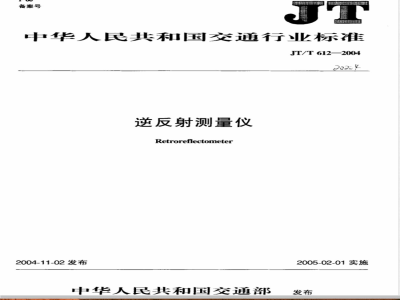本标准规定了逆反射测量仪的术语和定义、结构与分类、技术要求、计量学特性、试验方法、检验规则以及标志、包装、运输与贮存等。本标准适用于便携式逆反射测量仪的制造和修理,不适用于实验室内30m标准几何条件下的绝对逆反射测量系统。 JT/T 612-2004 逆反射测量仪 JT/T612-2004 标准下载解压密码:www.bzxz.net