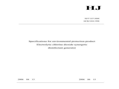 中文名称:环境保护产品技术要求 电解法二氧化氯协同消毒剂发生器