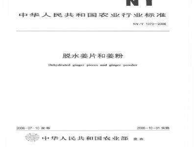 本标准规定了脱水姜片和姜粉的要求、试验方法、检验规则、标签与标识、包装运输和贮存。本标准适用于以姜科植物姜为原料经脱水加工而成的姜片和姜粉。 NY/T 1073-2006 脱水姜片和姜粉 NY/T1073-2006 标准下载解压密码:www.bzxz.net