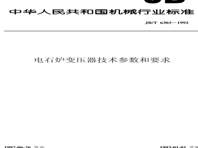 JB/T 6303-1992 电石炉变压器 技术参数和要求 JB/T6303-1992 标准下载解压密码:www.bzxz.net