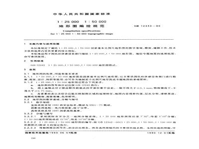 本标准规定了编绘1:250 00、1:50 000国家基本比例尺地形图的数学基础、精度、编辑工作、技术方法和地图内容各要素的综合指标。