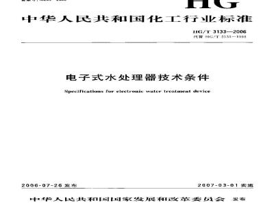 本标准代HG/T31331998电子式水处理器技术条件》。本标准与HG/T31:3:—1998相比主要变化如下:HG/T3133—2006