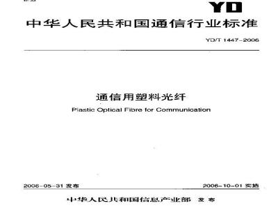 本标准规定了具有塑料芯和塑料包层 折射率分布为突变型、多阶型或渐变型的通信用塑料光纤(以下简称光纤)的产品分类、要求、试验方法、检验规则、标志、使用说明和包装、运输、贮存的要求。本标准规定的塑料光纤可用于短距离通信、电话及数据处理设备,也可用于车、船和航空器内的传输网。 YD/T 1447-2006 通信用塑料光纤 YD/T1447-2006 标准下载解压密码:www.bzxz.net