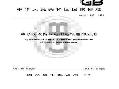GB8898电网电源供电的家用及类似一般用途的电子及有关设备的安全要求GB/T14197声系统设备互连的优选配接值SJ262