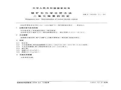 Manganese ores-Determination of carbon dioxide contentGB/T 14949. 11 --- 94