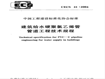 CECS 41-2004 建筑给水硬聚氯乙烯管管道工程技术规程(附条文说明) CECS41-2004 标准下载解压密码:www.bzxz.net