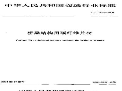 人标准研梁结构同非培应安材科系列产品技本标作之系列标准划已发作教有!T引桥与结构用落给纤理复企材料:川532桥泌结构用碳纤维片转,