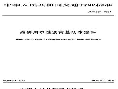 本标准规定了路桥用水性沥青基防水涂料的分类、技术要求、试验方法、检验规则和标志、包装、运输、贮存等。本标准适用于公路、城市和铁路桥梁及涵洞等防水工程为主要用途的乳化沥青防水材料以及在其中掺入各种改性材料的水乳性防水涂料。 JT/T 535-2004 路桥用水性沥青基防水涂料 JT/T535-2004 标准下载解压密码:www.bzxz.net