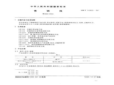 本标准规定了青铜线材产品分类、技术要求、试验方法、检验规则及标志、包装、运输和贮存。本标适用于各工.业部门使用的镉青铜、硅青铜、锡青铜圆线。2引用标准