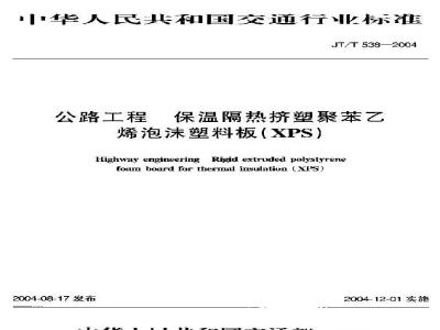 本标准规定了公路工程用保温隔热挤塑聚苯乙烯泡沫塑料板(XPS)的分类、主要规格与尺寸、性能要求、试验方法、检验规则、标志、包装、运输、贮存等。本标准适用于使用温度在一509.- 75℃范围内的公路工程用隔热挤塑聚苯乙烯泡沫塑料板,也适用于公路工程用带有塑料、箔贴面以及带有表面涂层的隔热挤塑聚苯乙烯泡沫塑料板。 JT/T 538-2004 公路工程 保温隔热挤塑聚苯乙烯泡沫塑料板(XPS) JT/T538-2004 标准下载解压密码:www.bzxz.net