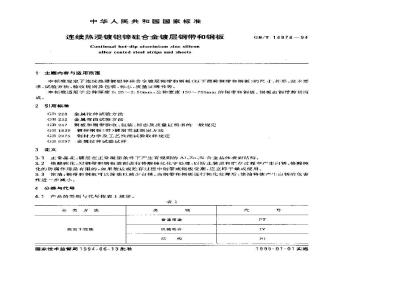 本标准规定了连续热浸镀铝锌硅合金镀层钢带和钢板的尺寸、外形、技术要求、试验方法、验收规则及包装、标志、质量证明书等。 本标准适用于公称厚度0.25~2.50mm,公称宽度150~750mm的钢带和钢板。钢板由钢带剪切而成。 GB/T 14978-1994 连续热浸镀铝锌硅合金镀层钢带和钢板 GB/T14978-1994 标准下载解压密码:www.bzxz.net