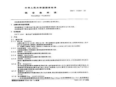 本标准规定了与铁合金产品、铁合金分析用取样和制样、铁合金筛分有关的术语。本标准适用于铁合金技术要求、交货条件、取样和制样及筛分。 GB/T 14984-1994 铁合金术语 GB/T14984-1994 标准下载解压密码:www.bzxz.net