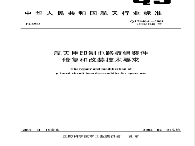 中文名称:航天用印制电路板组装件修复和改装技术要求