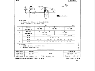 QJ 801A-1997 机床夹具零件及部件 导柱 QJ801A-1997 标准下载解压密码:www.bzxz.net