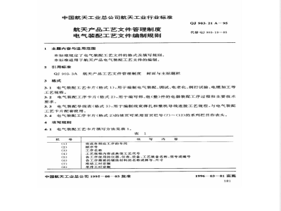 中文名称:航天产品工艺文件管理制度 电气装配工艺文件编制规则