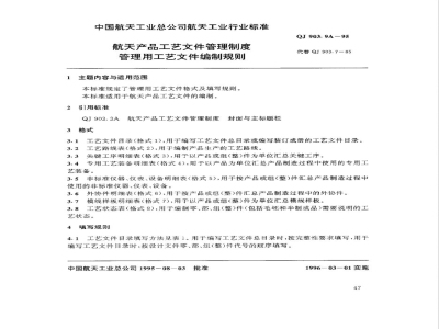 QJ 903.9A-1995 航天产品工艺文件管理制度 管理用工艺文件编制规则 QJ903.9A-1995 标准下载解压密码:www.bzxz.net