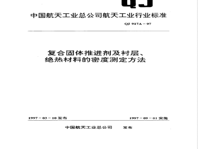 QJ 917A-1997 复合固体推进剂及衬层、绝热材料的密度测定方法 QJ917A-1997 标准下载解压密码:www.bzxz.net
