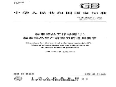 GB/T15000在《标准样品工作导则》的总标题下,分成7个部分,即:GB/T15000.1—1994
