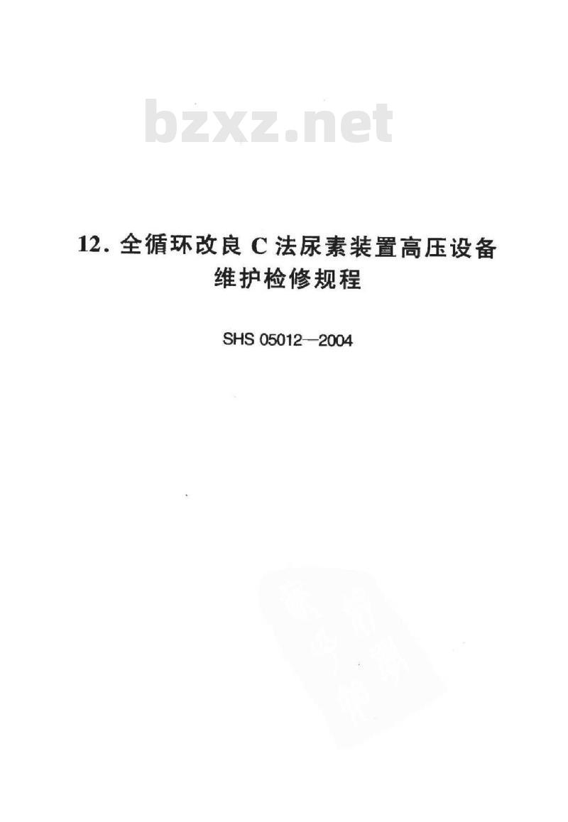 SHS 05012-2004 全循环改良C法尿素装置高压设备维护检修规程 SHS05012-2004 标准下载解压密码:www.bzxz.net