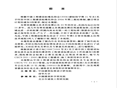 根据中国工程建设标准化协会(2004)建标协学第31号文《关于印发中国工程建设标准化协会2004年第二批标准制、修订项目计划的通知》的要求,制定本规程。自密实混凝土技术的发展已有20年的历史,在国内也已应用10多年。近几年自密实混凝土在我国发展应用速度加快,应用领域也进一步的拓展,但国内尚未有统一的工程标准,致使在应用中缺乏指导性文件,产生了一些问题,不利于该项技术的推广应用。为此,中国工程建设标准化协会于2004年将《自密实混凝土应用技术规程》列入了编制计划,制定了本规程。本规程是在搜集了国内外有关的标推资料,翻译了国外的有关资料,并结合国内的实际情况多次以不同的检测方法进行了试验研究,又经征求有关单位及专家意见的基础上,进行编制的根据国家计委计标L1986J1649号文《关于请中国工程建设标准化委员会负责组织推荐性工程建设标准试点工作的通知》的要求,现批准协会标推《自密实混凝土应用技术规程》,编号为CECS203:2006,推荐给工程建设、施工和使用单位采用。本规程由中国工程建设标准化协会建筑防水专业委员会CECS/TC23归口管理,由中国建筑标准设计研究院(北京西城区车公庄大街19号,邮编:100044)负责解释。在使用中,如发现需要修改和补充之处,请将意见和资料径寄解释单位。主编单位:中国建筑标准设计研究院清华大学