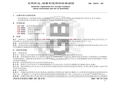 英文名称: 农药贮运,销售和使用的防毒规程