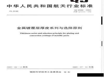 金属镀覆层厚度系列与选择原则本标准规定了航关产品金属零部件的金属镀覆层厚度系列与选择原则。QJ450B—2005