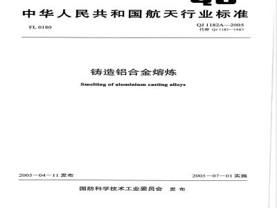 e)删除晨光二号CGRT-2变质工艺。本标准由中国航天科技集团公司提出。本标准由中国航天标准化研究所归口。本标准起草单位:中国航天科技集团公司第一研究院二一厂。本标准主要起草人:张建兵、吴光然、邬京利、肖文丰、田堂振。本标准于1987年5月首次发布,本次为第一次修订。QJ1182A—2005