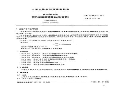 本标准主要起草人昊志成、江月碧、温辉萍、佘培柱。本标准1991年6月1日首次发布实施。本标准等效采用联合国粮农组织/世界卫生组织食品添加剂联合专家委员会(FAO/WHOJECFA)CXAS—1983《环已基氨基磺酸钠》。442