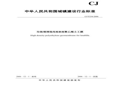 本标准为首次发布。本标准指标参考了国外相关标准,参考并引用了部分美国测试与材料协会(ASTM)测试方法和国际土工合成材料研究协会(GRI)测试方法。本标准规定了垃圾填埋场用高密度聚乙烯土工膜的分类、要求、试验方法、测试频率、标志、标签、包装、运输和贮存等。本标准适用于垃圾填埋场防渗、封场等工程中所使用,以中(高)密度聚乙烯树脂为主要原料,添加各类助剂所生产的高密度聚乙烯土工膜。 CJ/T 234-2006 垃圾填埋场用高密度聚乙烯土工膜 CJ/T234-2006 标准下载解压密码:www.bzxz.net
