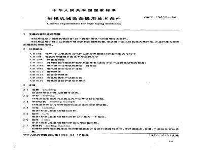 本标准规定了制绳机械设备(以下简称“绳机”)的通用技术条件。GB/T 15032—94
