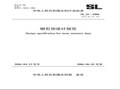 SL 25-2006 砌石坝设计规范 SL25-2006 标准下载解压密码:www.bzxz.net