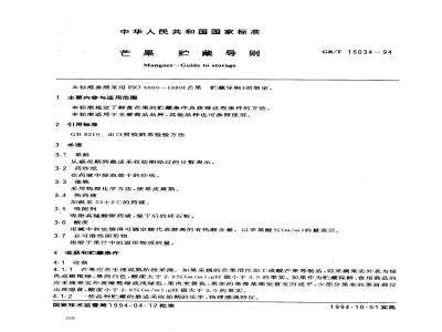 本标准规定了鲜食芒果的贮藏条件及获得这些条件的方法。本标准适用于主要商品品种,其他品种也可参照使用。 GB/T 15034-1994 芒果 贮藏导则 GB/T15034-1994 标准下载解压密码:www.bzxz.net