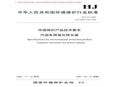 HJ/T 331-2006 环境保护产品技术要求 汽油车用催化转化器 HJ/T331-2006 标准下载解压密码:www.bzxz.net