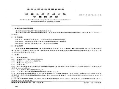 本标准适用于钼、锯中铜含量的测定,也适用于其氢氧化物中铜含量的测定。测定范围:0.0002%~0.06%。