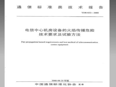 YDB 022-2008 电信中心机房设备的火焰传播危险技术要求及试验方法 YDB022-2008 标准下载解压密码:www.bzxz.net