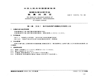 GB/T 15076.14-1994 钽铌化学分析方法 氧量的测定 GB/T15076.14-1994 标准下载解压密码:www.bzxz.net