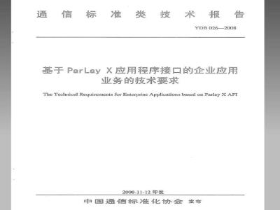 本技术报告是ParlayX业务系列技术报告之一,该系列技术报告预计结构如下:1):基于ParlayX应用程序接口的个人应用业务的技术要求;2)基于Parlayx应用程序接口的企业应用业务的技术要求。YDB0262008