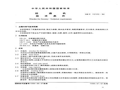 本标准由中华人民共和国林业部提出。本标准由全国林业机械标准化技术委员会归口。本标准由北京林业大学负责起草。本标准主要起草人沈瑞珍、高双林、陈。自本标准实施之日起,原专业标准ZBB96012—86《绞盘机型式与参数》和ZBB96014—86《绞盘机、技术条件》作废。