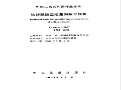 TB 10121-2007 铁路隧道监控量测技术规程(附条文说明) TB10121-2007 标准下载解压密码:www.bzxz.net