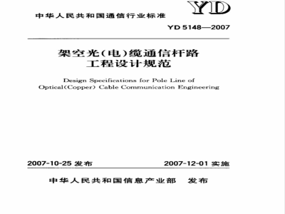 YD 5148-2007 架空光(电)缆通信杆路工程设计规范 YD5148-2007 标准下载解压密码:www.bzxz.net