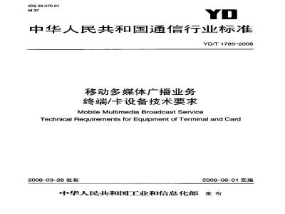 YD/T 1789-2008 移动多媒体广播业务 终端/卡设备技术要求 YD/T1789-2008 标准下载解压密码:www.bzxz.net