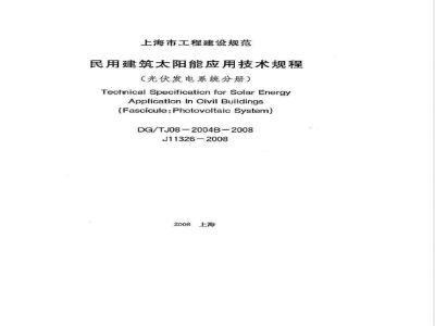 Technical Specification for Solar EnergyApplication In Civil Buildings(Fascicule:PhotovoltaicSystem)DG/TJ08—2004B-2008