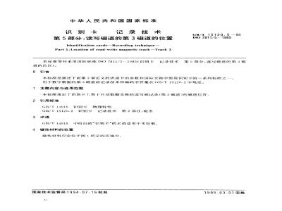 本标准是描述下面第3章定义的识别卡的参数和国际交换中使用识别卡的一系列标准之一。用于数字数据的第3磁道的记录技术和编码字符集在GB/T15120.2中规定。1主题内容与适用范围